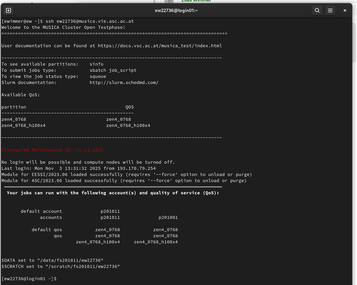 ssh [-A] [-X] <username>@musica.vie.asc.ac.at